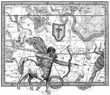 "[Sagittarius] is a centaur--part man and part horse, and he is an archer. The word Sagittarius means 'The Archer.' In Akkadian, he is called Nun-ki, which means 'The Prince of the Earth.'. ...this depicts Christ...the victorious one--the risen and victorious king. He comes now as an archer... destroying Satan... The human portion of the Centaur is drawing a bow and aiming an arrow at Antares, the very heart of the Scorpion... So here we see that Christ, the Conquering One, is the One whose arrow is aimed at the Scorpion.