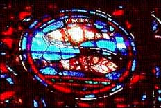 Pisces zodiac symbol in stained glass, Chartres cathedral of France |