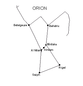 Orion, the Hunter, is a prominent constellation, perhaps the best-known in the sky. At the time of the Grand Planetary Alignment on May 5, the five planets (Mercury, Venus, Mars, Jupiter, and Saturn) were in the process of leaving the constellation Aries and entering Taurus. It is indeed auspicious that the constellation of Orion appears in the sign of Taurus, which opens or 'births' the Golden Age of Saturn. According to The Saturn Myth by David Talbot, Orion was known as Tammuz in Babylon and Saturn in Rome: "...The story of Orion preceded astrology. (In fact, Orion is widely acknowledged to be the Greek version of the Babylonian Tammuz-Ninurta, the planet Saturn.)" (93:331) The Roman god, Saturn is the Greek Chronos, the god of Time. In his book, Fingerprints of the Gods, Graham Hancock also identified Orion as the god of Time (Chronos/Saturn): "In the subcontinent of India...the Orion constellation is known as Kal-Purush, meaning Time-Man..." (236:262) Saturn was also worshipped as the creator, who was believed to be Adam: "The first religious symbols were symbols of Saturn, and so pervasive was the planet-god's influence that the ancients knew him as the creator, the king of the world, and Adam the first man." (93:1-2) The constellation of Orion looks like a man's torso, having arms but neither a head nor legs. In the section of this report on Scorpio we first learned that the god Orion molested Diana, for which offense the goddess summoned a Scorpion to sting the miscreant. In remembrance of Orion's flight from the Scorpion, it is therefore said: "...Orion was placed among the stars in such a way that when Scorpio rises, Orion sets." (570:188) |