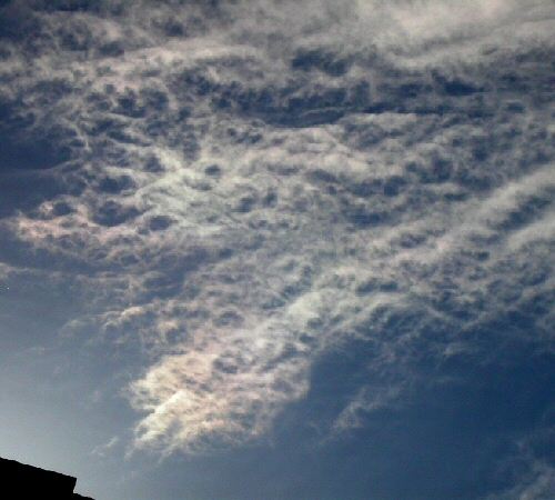 Chemtrail colors seen in this thin layer of bubbling clouds. Could this be HAARP or other scalar energies heating the sky?
