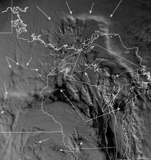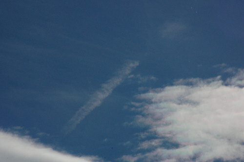 Intersecting waves... One chemtrail marking a boundary at the top-right portion of the image.