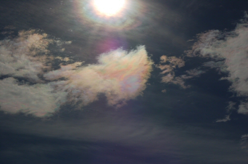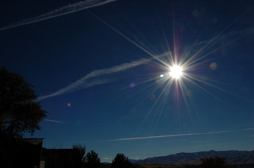 The chemtrail sheen glowing in the clouds nearest the sun.