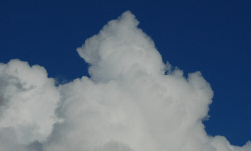 A chemtrail disappears into a distant cloud deck. Passanger planes go over these clouds to avoit jostling the passanger cabin. Chemtrail planes go right through the clouds... they need to that is why they are up there.