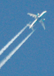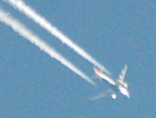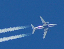 This plane is leaving one of the long-lasting marker type of chemtrails. Interesting paint job, isn't it? His trail is the top one in the image below.