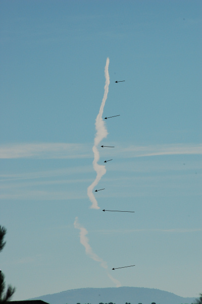 Chemtrails deforming as the plane threaded the marking-chemtrail through the scalar waves.