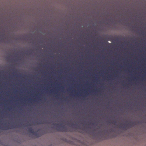 I shot this image of 'lights in the sky' after our 14" Thanksgiving snowstorm; only 2" of which was forecast. I shot nearly thirty long exposure (3 to 12 seconds in length) images late this evening nearly all pictures had orbs of some color and size. I didn't see them with my naked eye at the time.