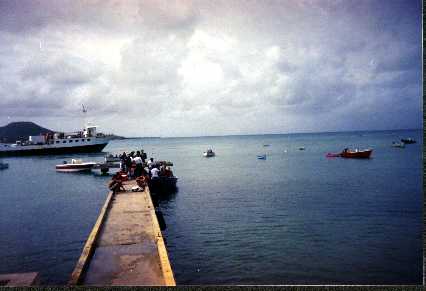 The ferry trip to Vieques took around one hour. As we approached the island everyone took pictures of its coastline. The Navy topic floated in the air. After arriving I followed the instructions I had been given and walked to a nearby dock where I found about twenty persons looking for the fishermen who could take them to the Navy owned part of the island. So many were waiting that I was there for two hours before I could fit in someone's boat.