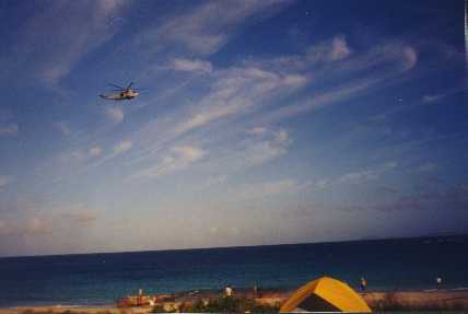 Another picture of the same helicopter. According to a study carried out by the Puerto Rico Health Department, the cancer rate in Vieques is 26.9 percent above Puerto Rico's average. The study, which covered the years 1990-94, says nothing about the possible causes of this unusually high cancer rate. But the Navy's opponents are certain that military activities on the island, including target practice with DU munitions, are to blame.